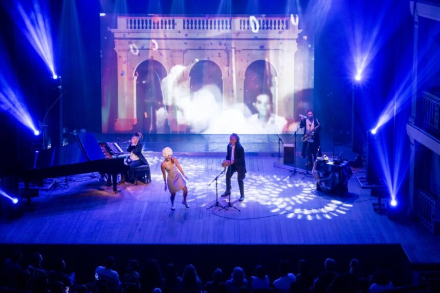 Com sonoplastia em som surround (Edu Coelho) e iluminação assinada por Heloiza Averbuck, o espetáculo proporciona uma experiência sensorial imersiva e instigante. O público também é presenteado com projeções gráficas criadas por Rique Barbo, que ilustram em tempo real as histórias e canções da fictícia — e profundamente real — Sbørnia.